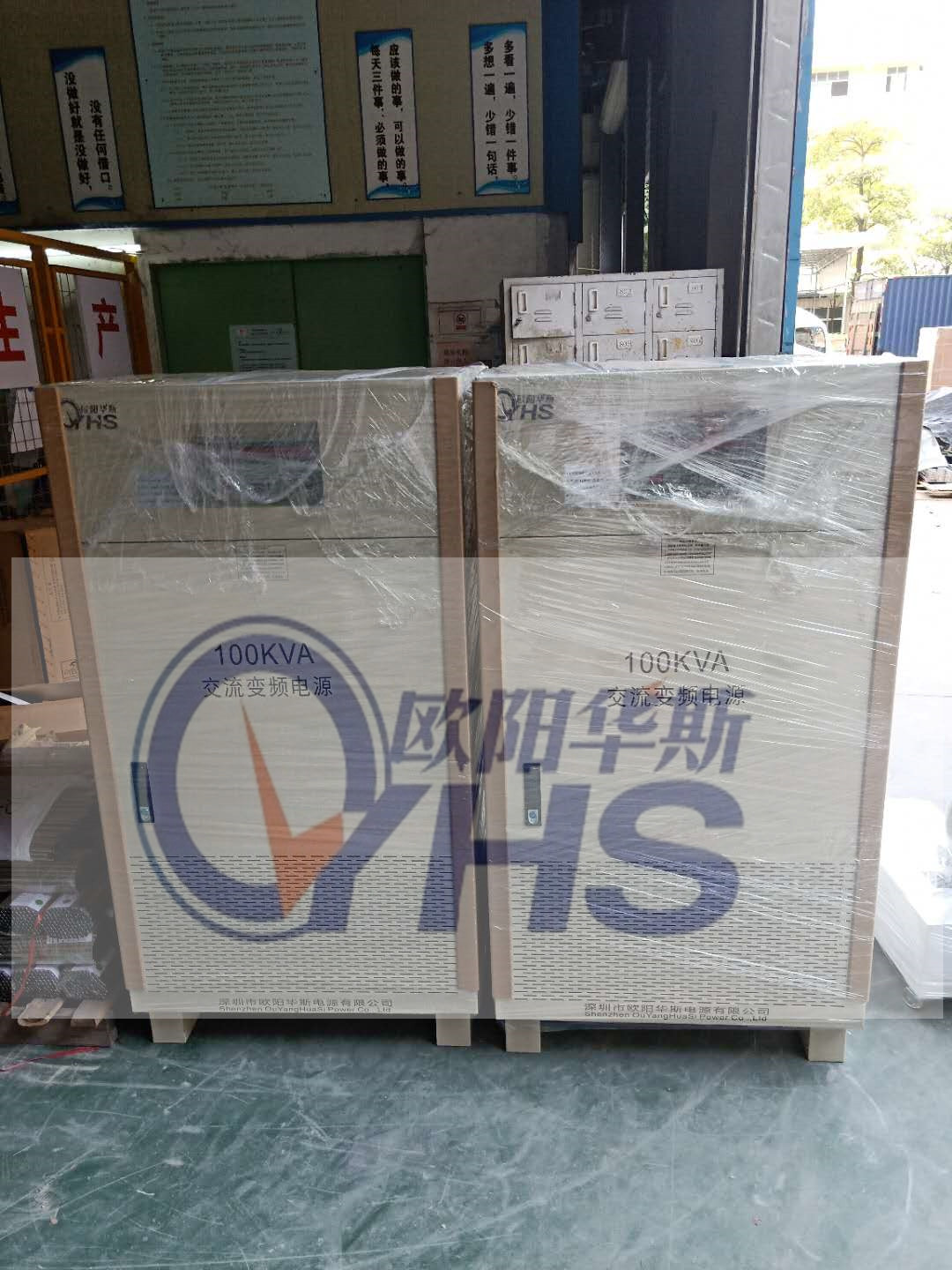 二台100KVA变频电源发货到清远客户现场,测试发热管,输出220V 50HZ,稳压稳频电源
