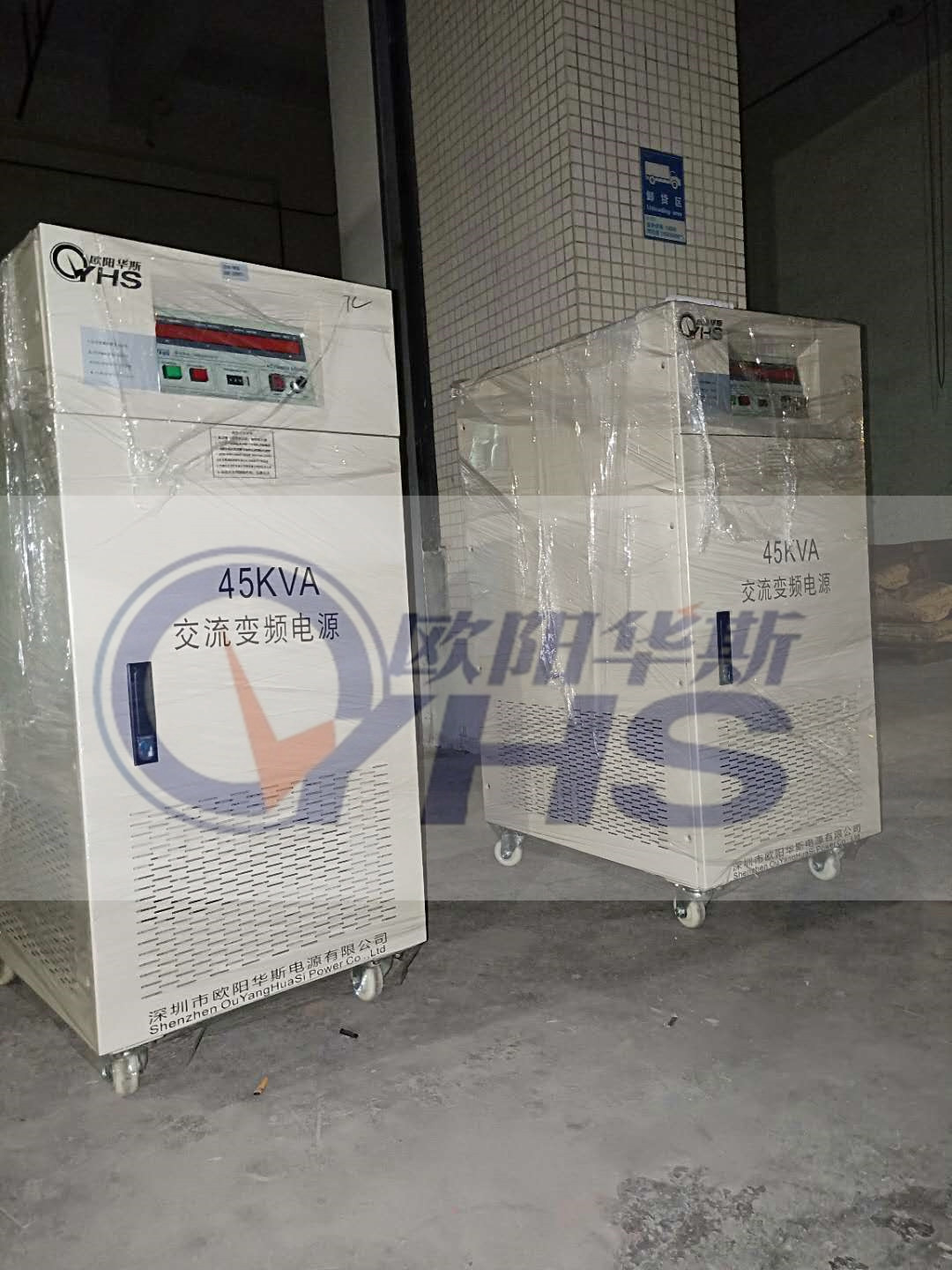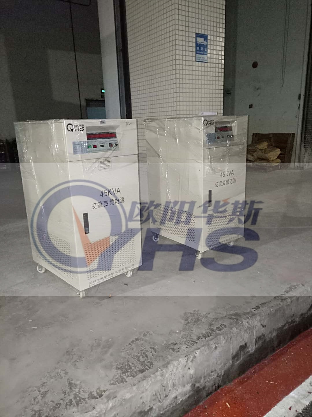 欧阳华斯厂家送货二台45KVA变频电源到佛山客户现场,测试LED产品。图为卸货现场。输出60HZ变频电源