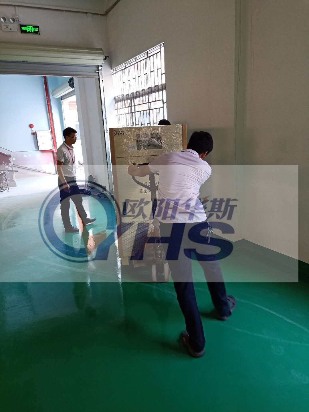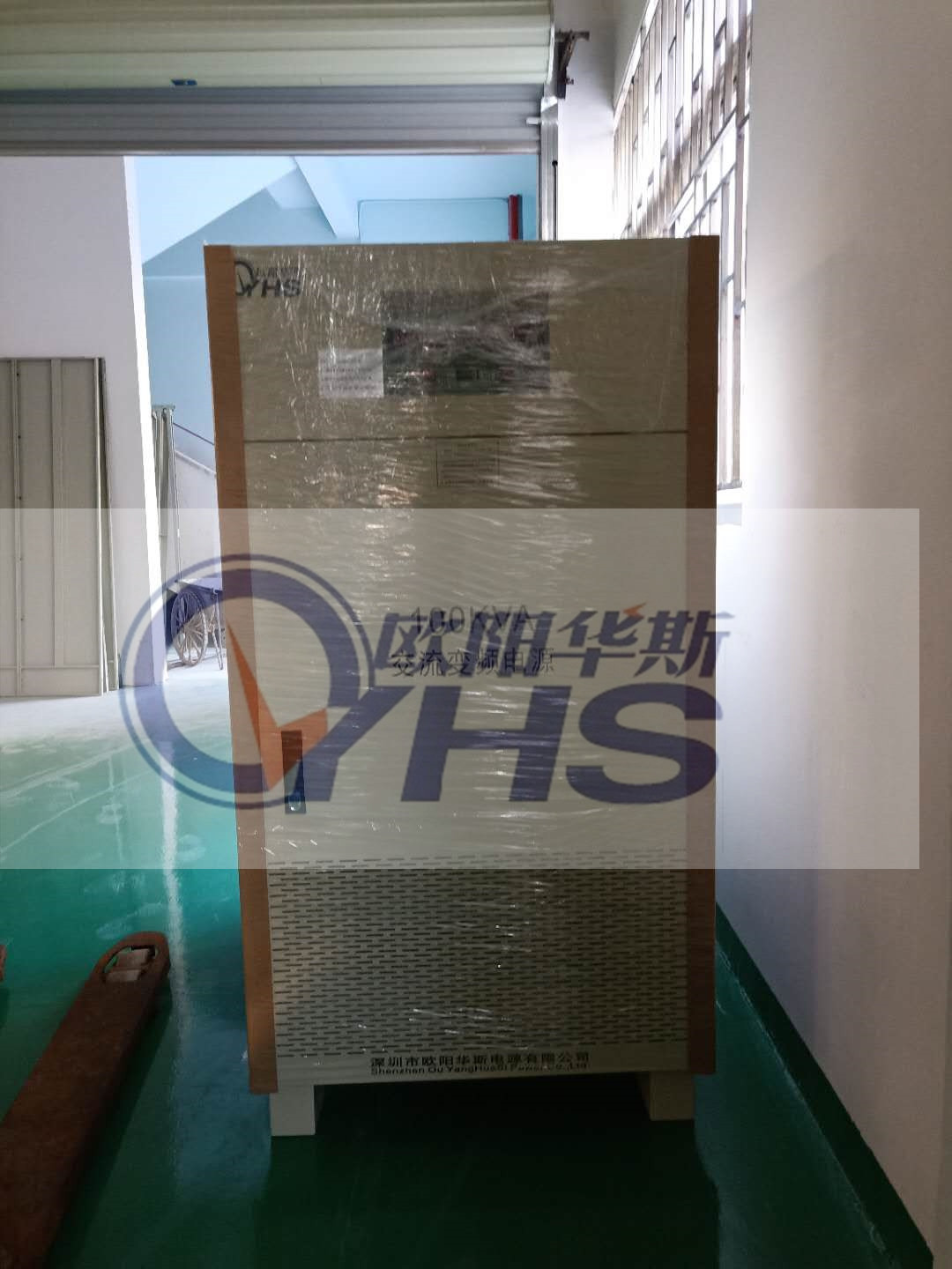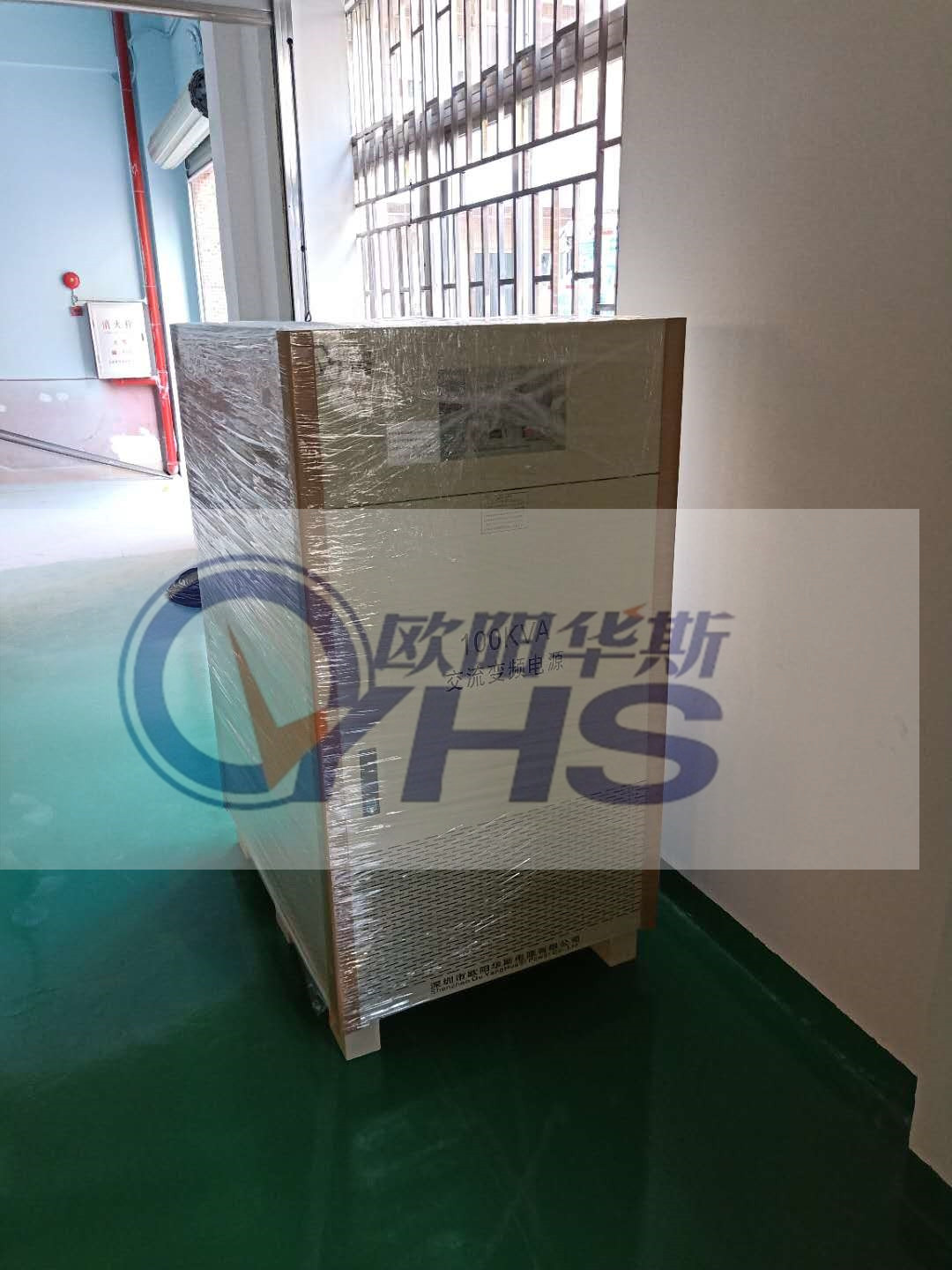 欧阳华斯100KVA变频电源出货东莞客户,测试120V 60HZ直发器产品,车间新装修好。