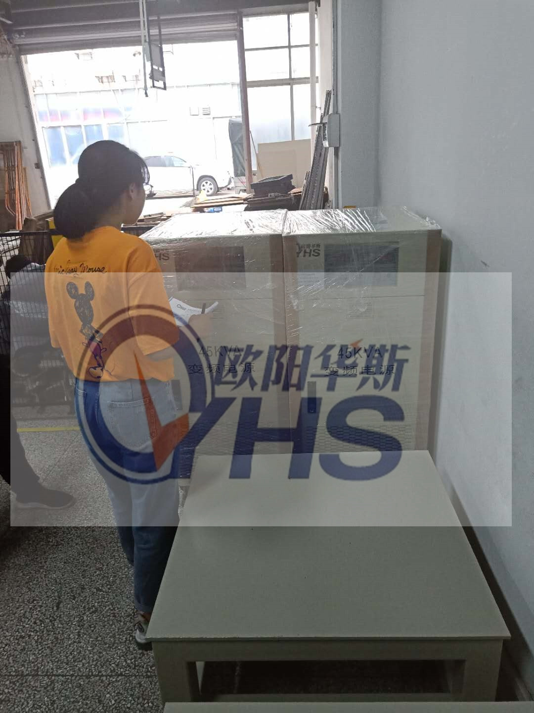 欧阳华斯100KVA变频电源出货东莞客户,测试120V 60HZ直发器产品,车间都是刚装修好。