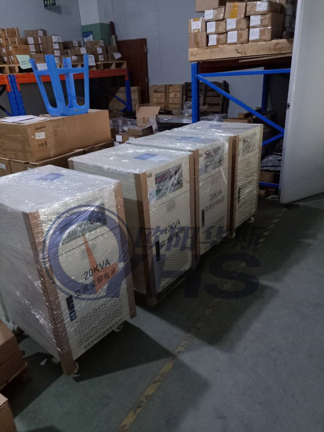 欧阳华斯四台20KVA变频电源送货客户现场,输出电压0-300V,测试小家电产品,之前有客户使用过。
