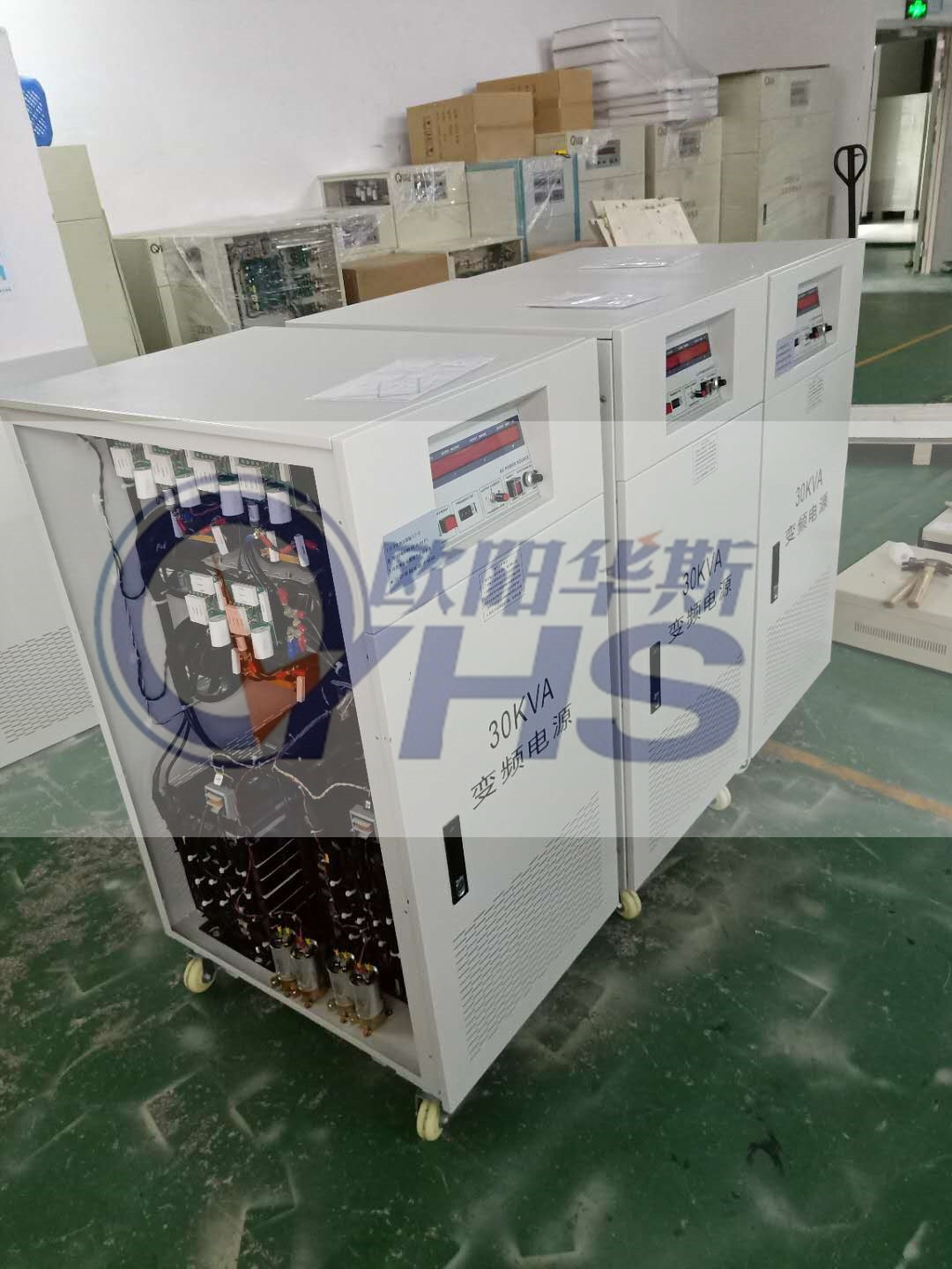 欧阳华斯出货三台三相30KVA变频电源,输入380V 60HZ,输出380V 50HZ,出口东南亚,带国内生产流水线使用。