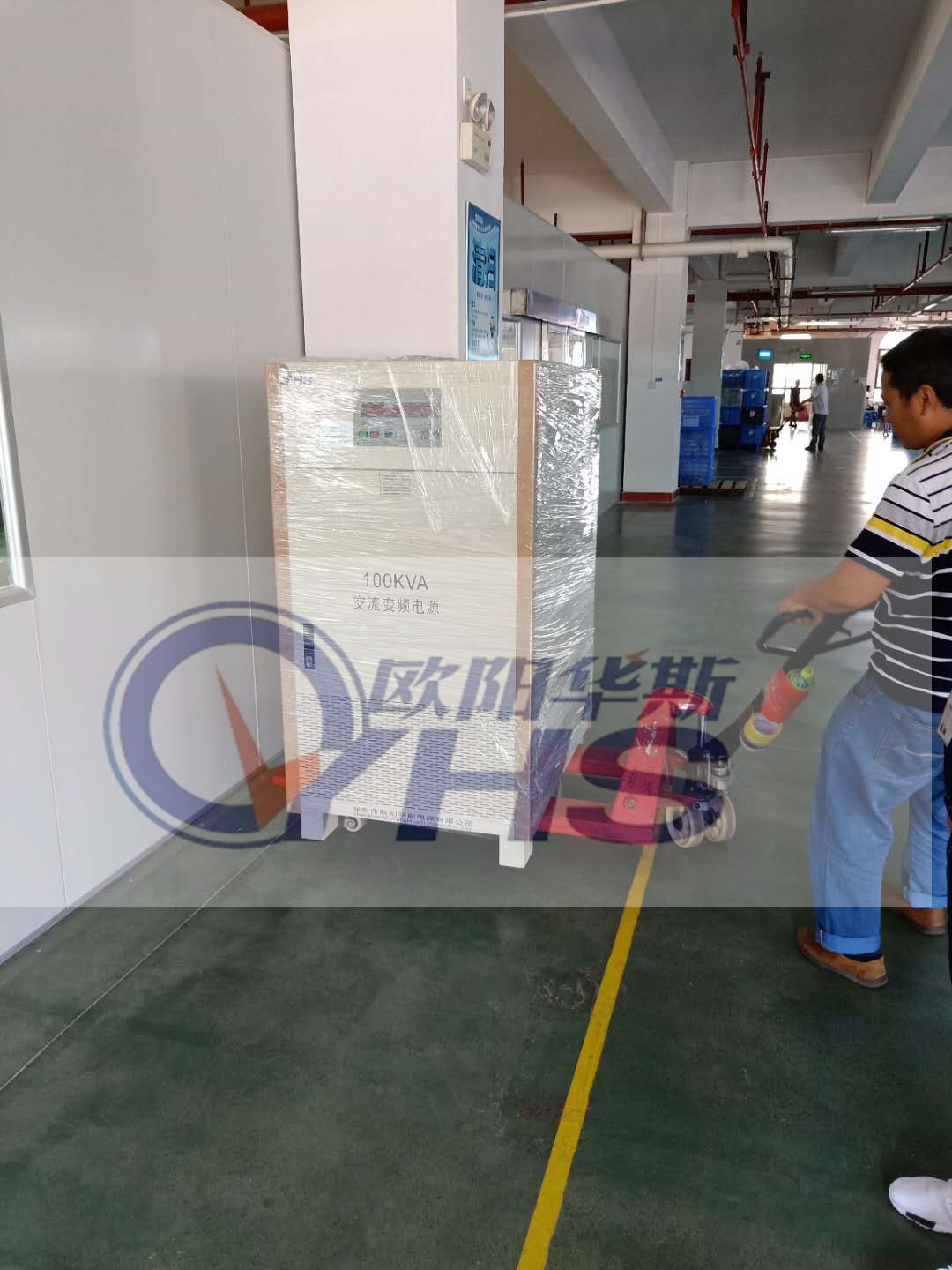 欧阳华斯出货三相100KVA变频电源,测试60HZ小家电,客户在中山三乡金稻电器。