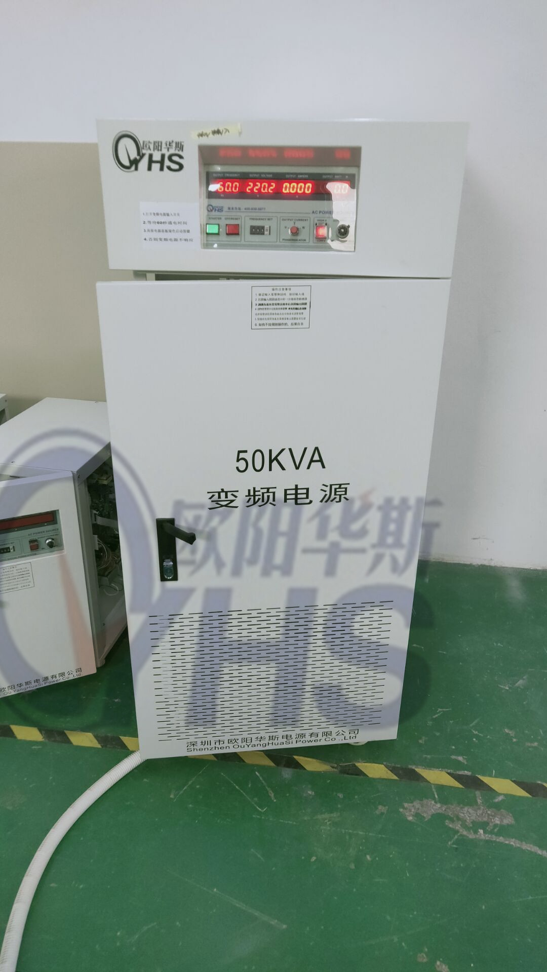三进三出50KVA变频电源,型号OYHS-98350,输入480V/60HZ,输出380V/50HZ,已测试合格,下午发往重庆,客户与配套设备一起出口。