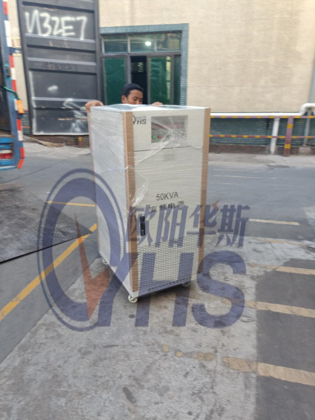 欧阳华斯50KVA变频电源出货东莞桥头客户现场,家电厂做测试电源。