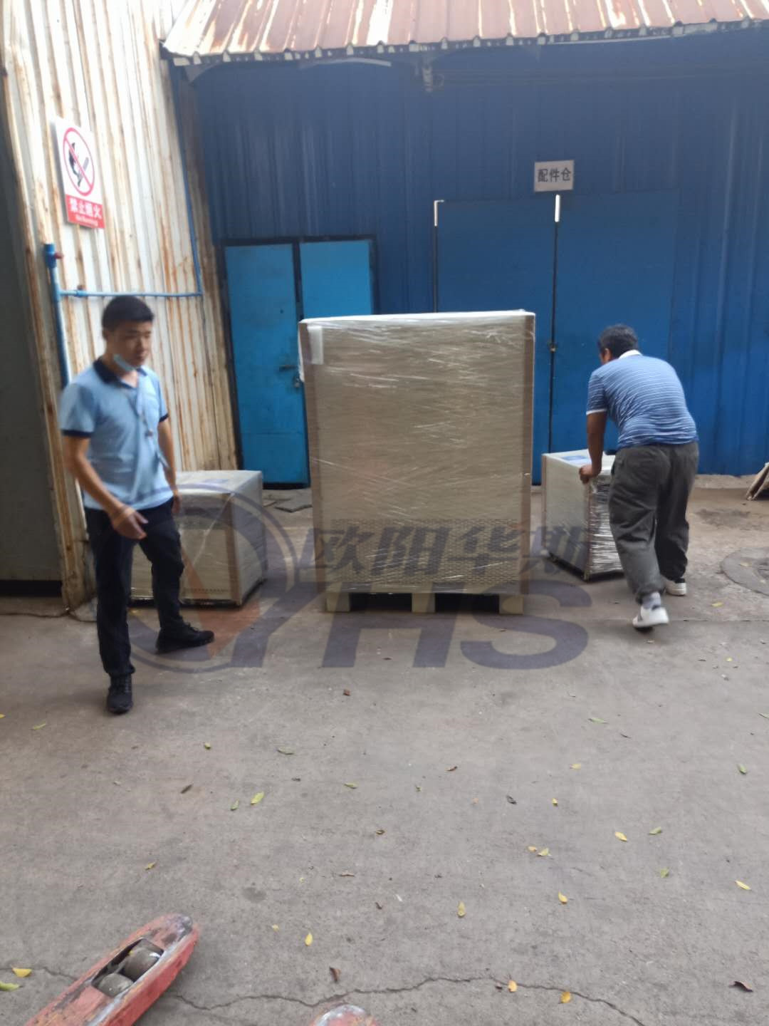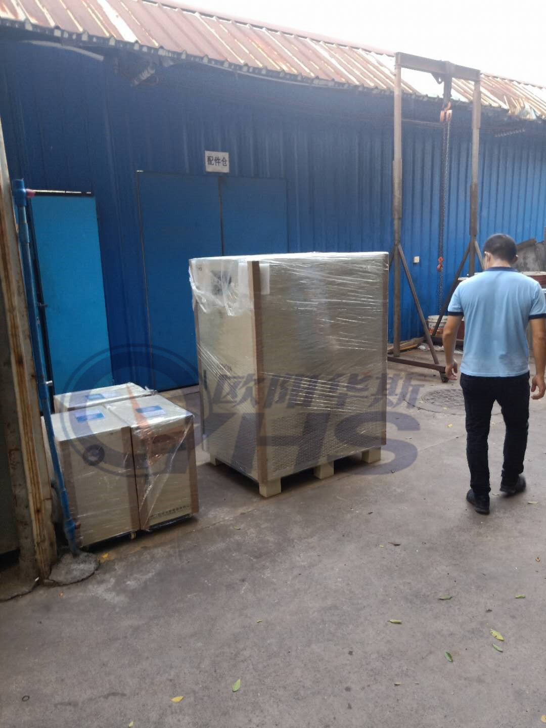 欧阳华斯三台5KVA变频电源,一台100KVA变频电源下货现场,测试产品。