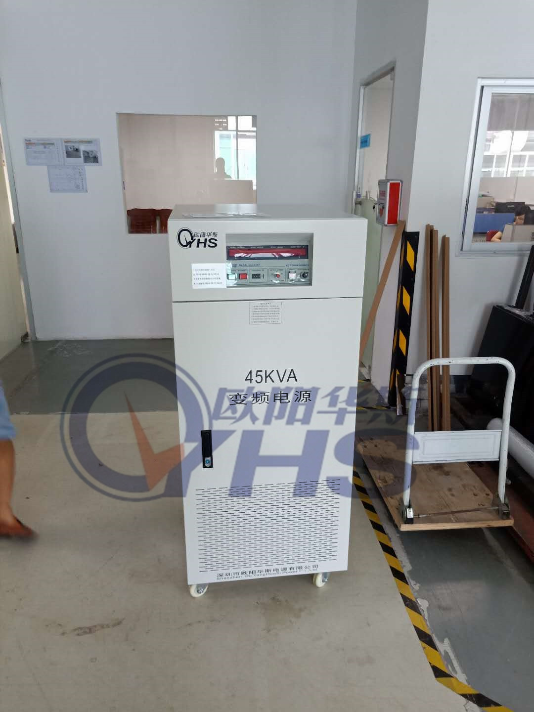 欧阳华斯三相45KVA变频电源出货深圳平湖客户现场,测试380V 60HZ,冷水机。