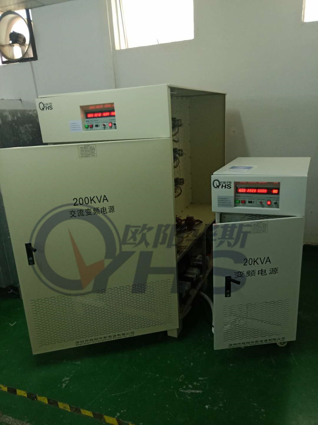 三相200KVA变频电源和三相20KVA变频电源发往安徽合肥,测试美国进口设备208V 60HZ。