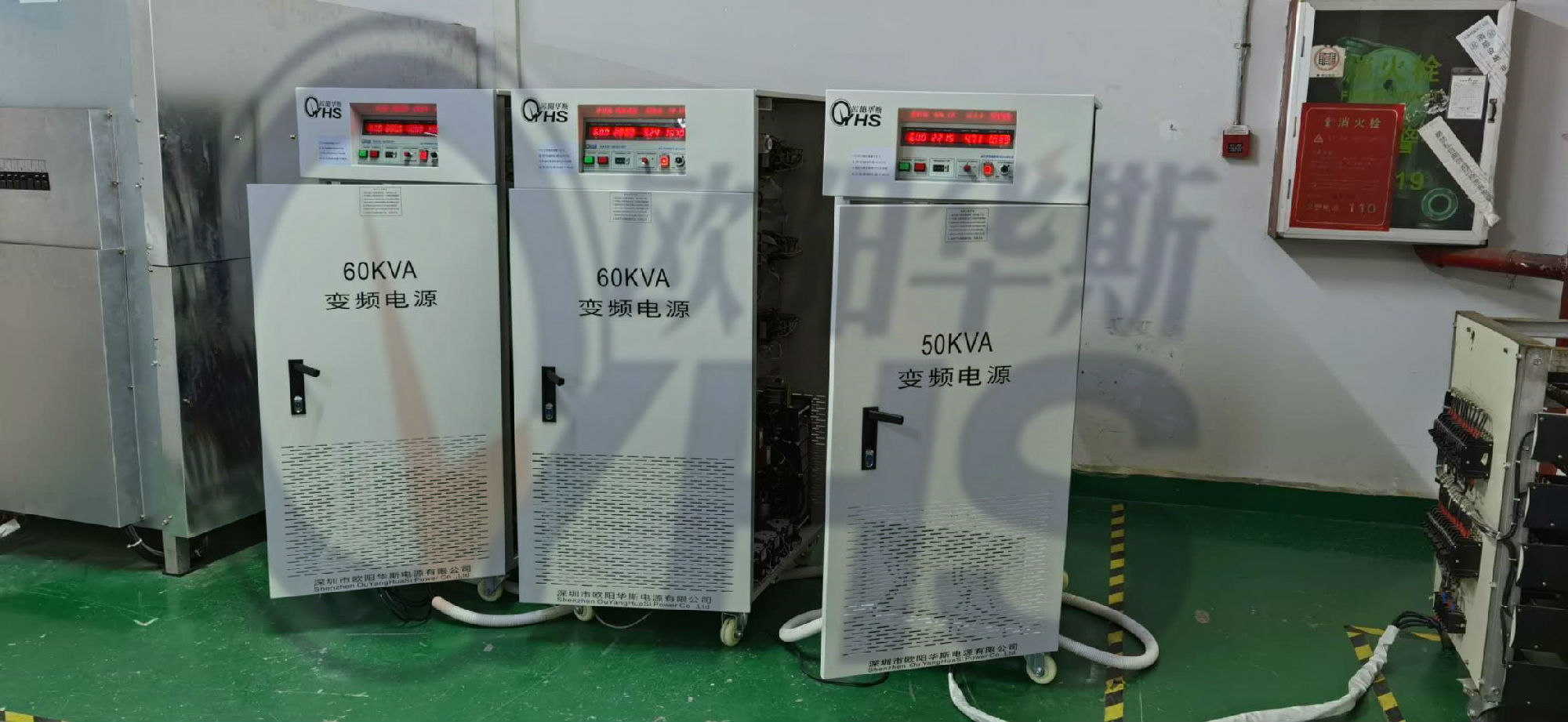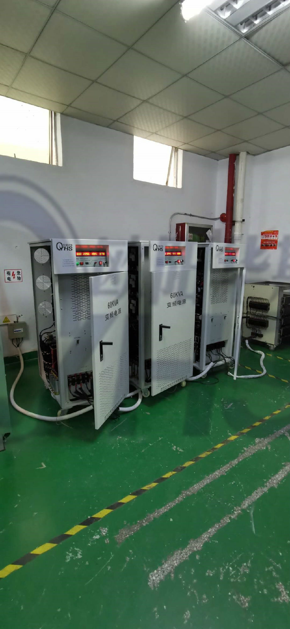 测试老化中老客户回订三相60KVA和三相45KVA变频电源|测试空调|立式|挂式空调|110V/220V/380V/440V/460V/480V/60HZ使用