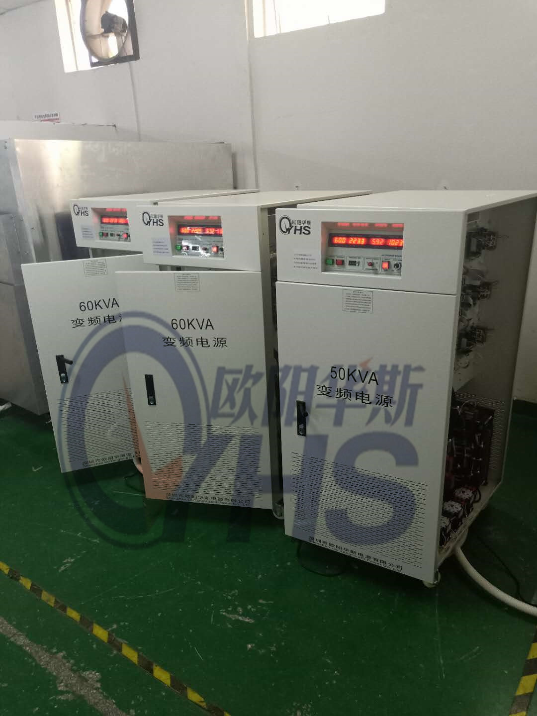 欧阳华斯三相60KVA变频电源二台发往上海,一台50KVA变频电源发往保定。在老化测试中。