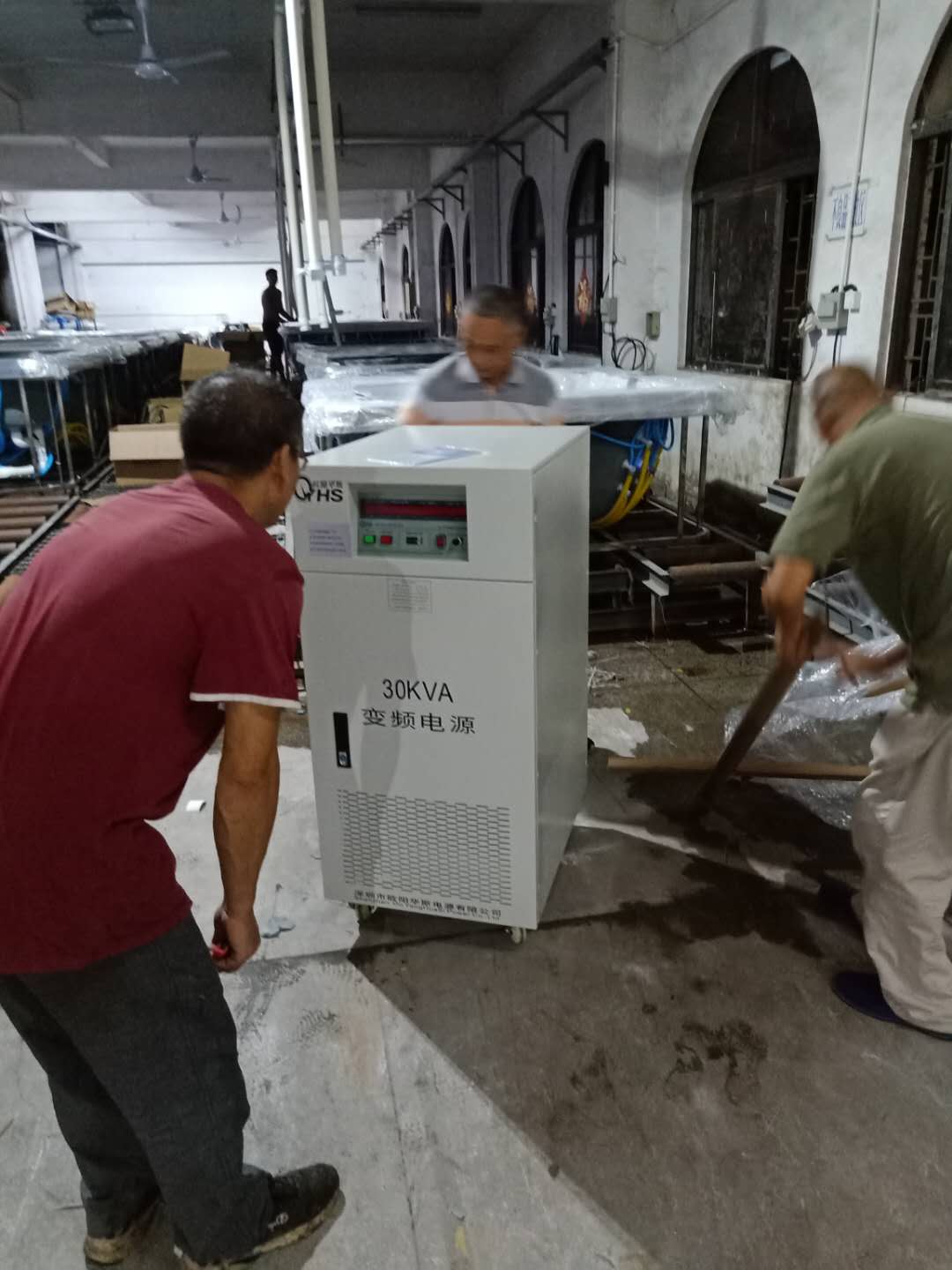 欧阳华斯45KVA变频电源送货东莞石碣客户现场,输出电压0-500V连续可调。