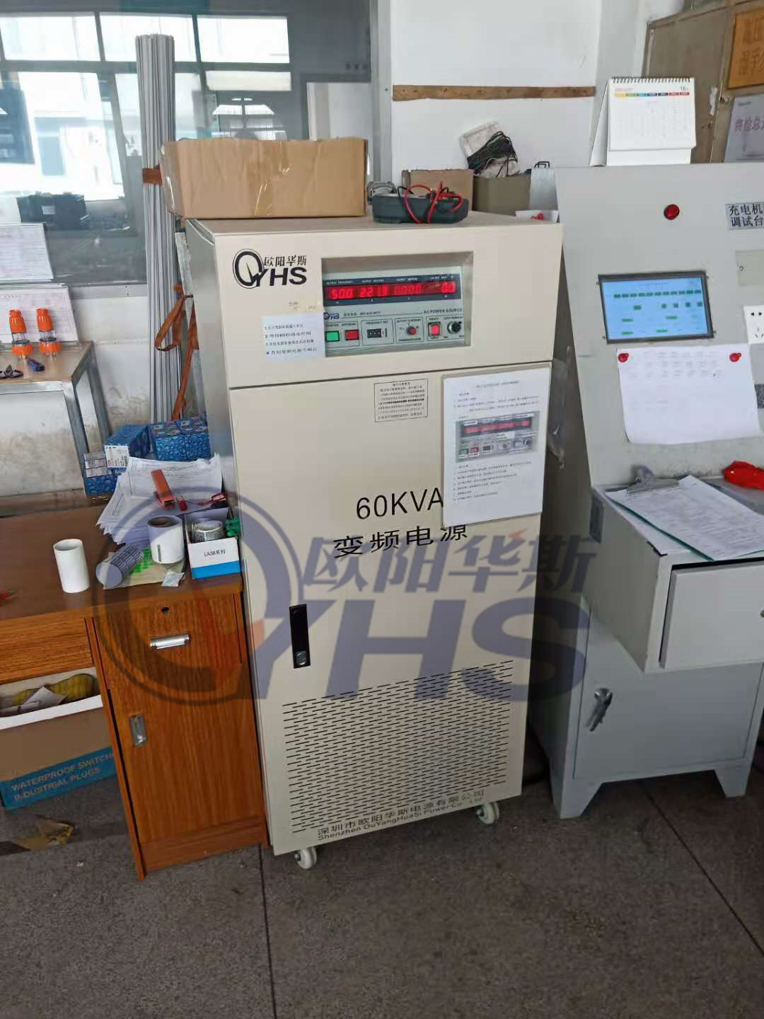 欧阳华斯三相60KVA变频电源使用在充电机上,客户出口产品测试使用