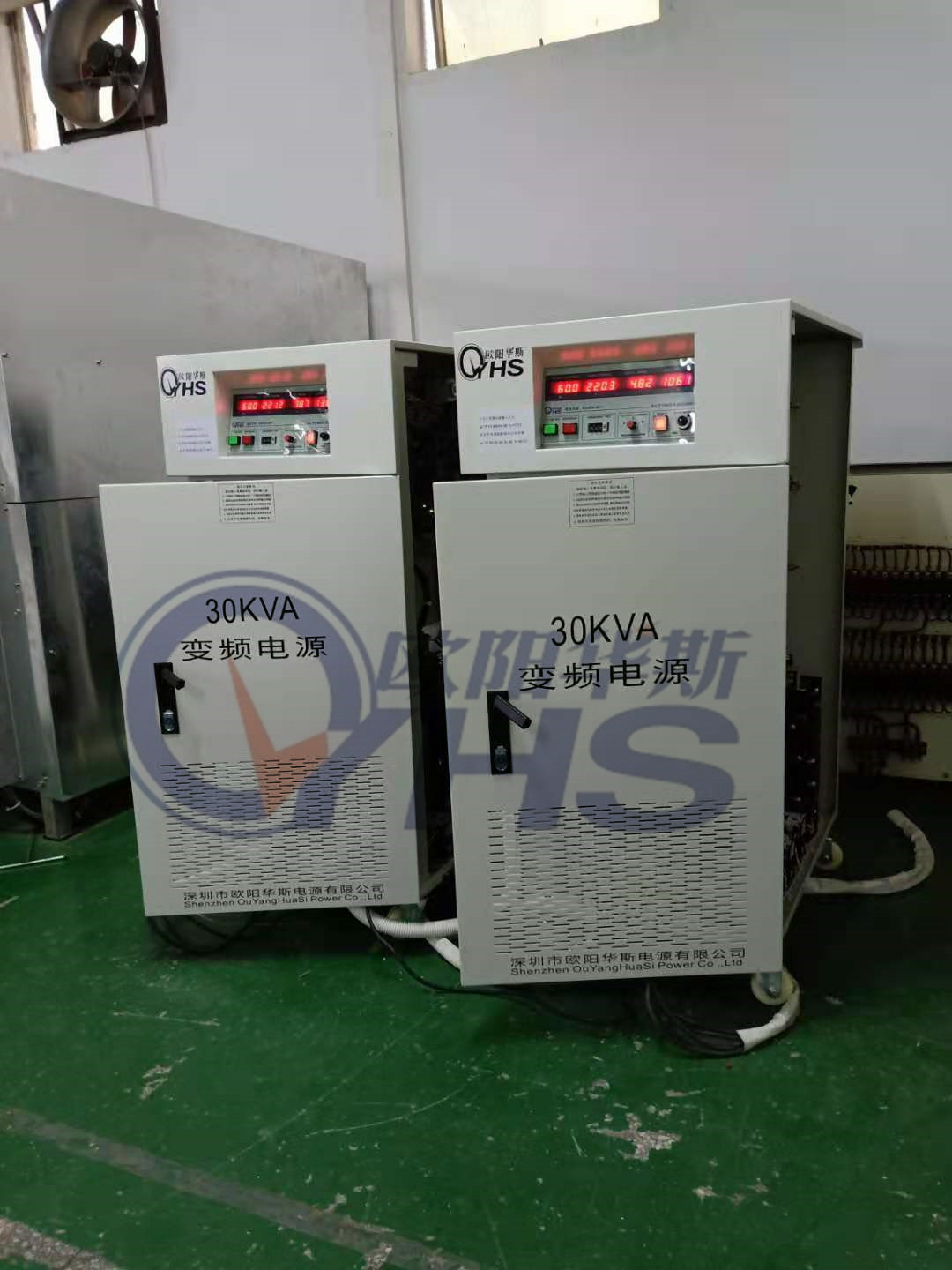 深圳欧阳华斯电源出货二台三相30KVA变频电源,测试出口产品,输出电压380V 60HZ。