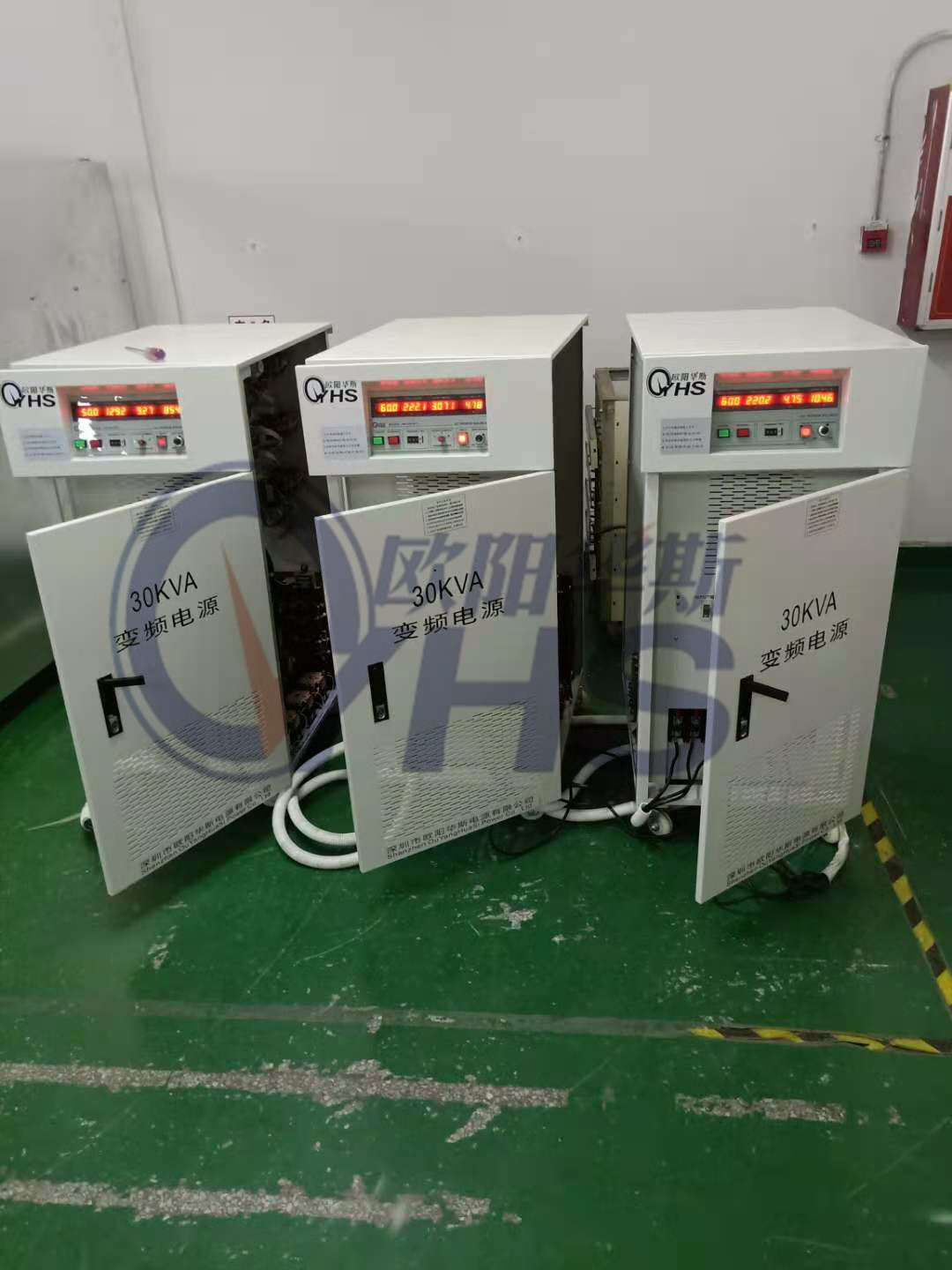 欧阳华斯三台三相30KVA变频电源出货菲律宾,输入三相220V/60HZ,输出380V/50HZ。
