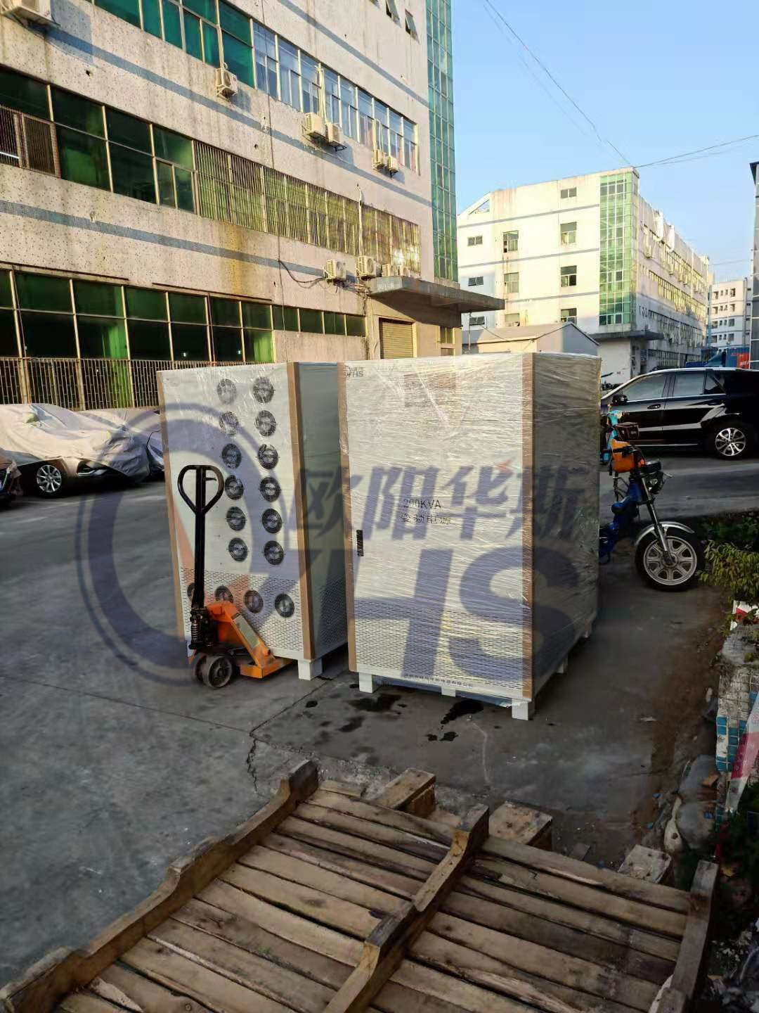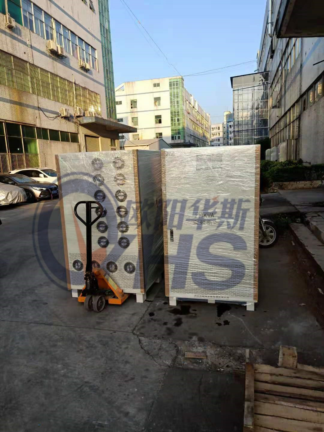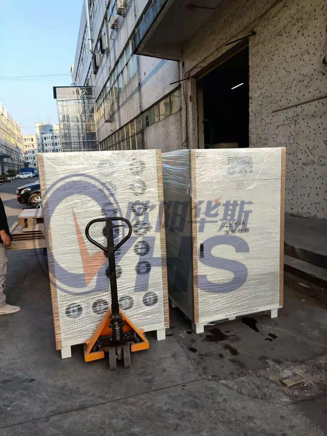 欧阳华斯二台200KVA变频电源发往青岛港,配国内设备使用。