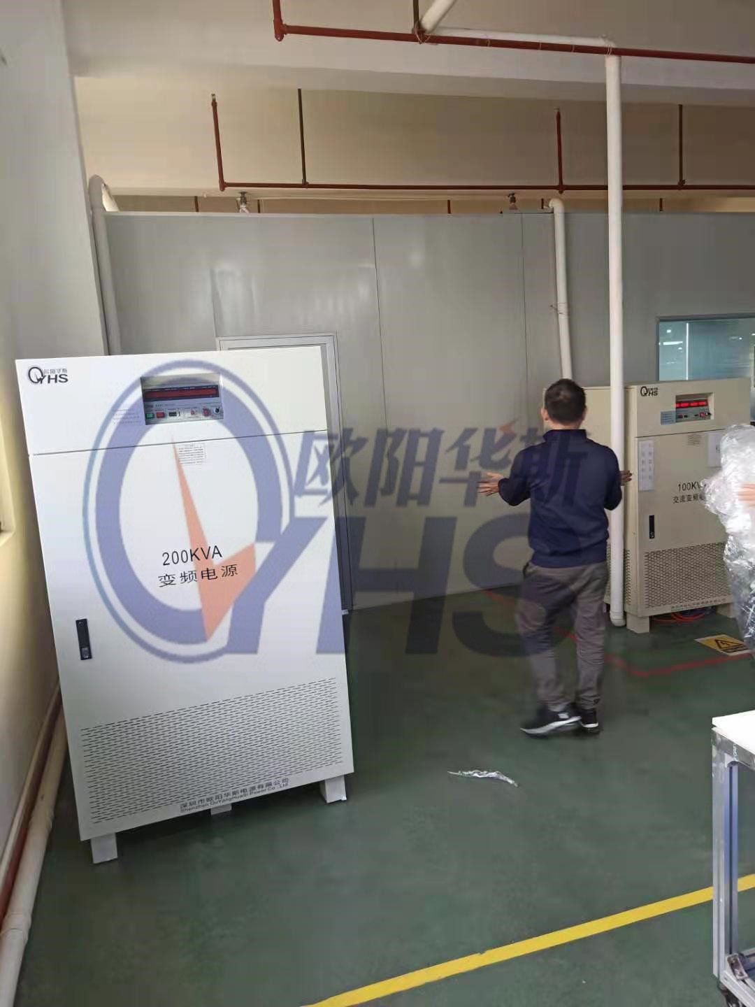 欧阳华斯三相200KVA变频电源出货中山三乡客户现场,测试老化出口加湿器。