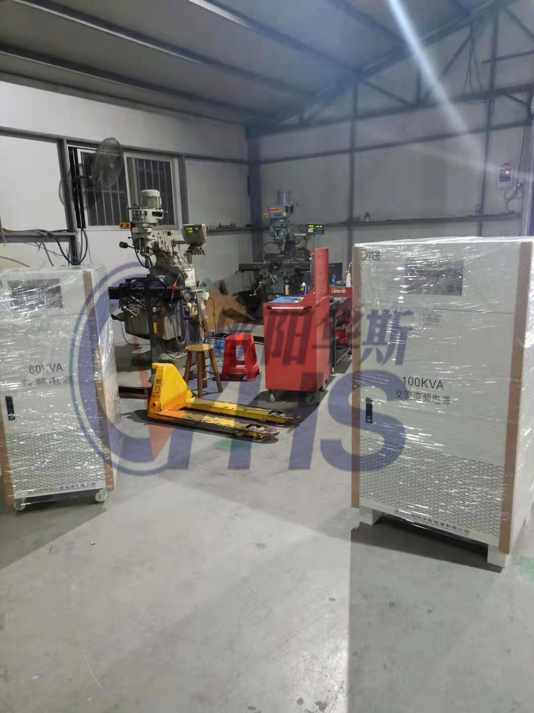 欧阳华斯三相100KVA变频电源和三相60KVA变频电源出货珠海客户,测试电容器。