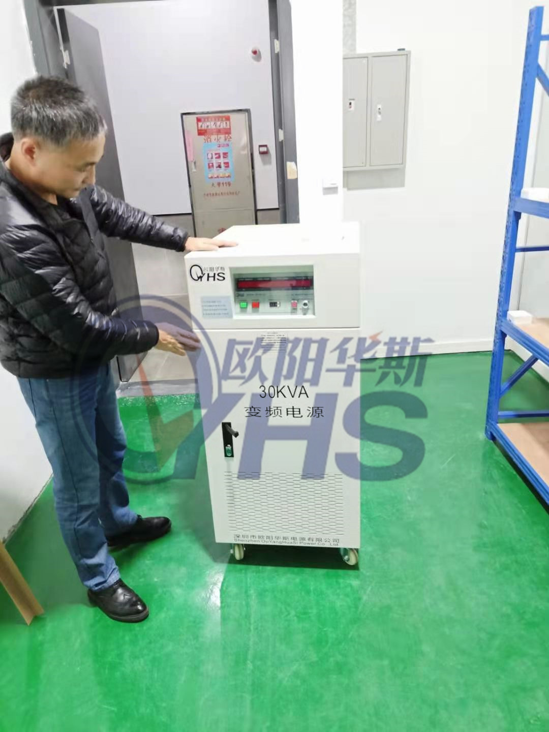 欧阳华斯30KVA变频电源出货佛山顺德家电厂,新厂房购买变频电源做出口测试使用